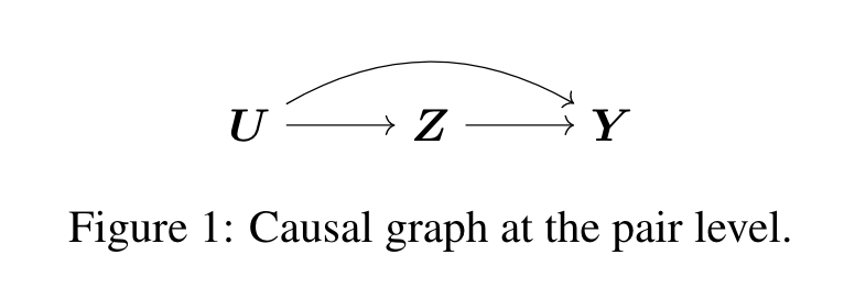 이 논문에서는 관측된 데이터가 쌍(pair) 형태로 주어졌다고 가정합니다. 와 로 이루어진 쌍 데이터는 각각 처치변수와 결과변수를 나타내고 공변량 는 unmeasured confounder로 가정합니다. 이때, 다음과 같이 두 성질을 가정합니다.